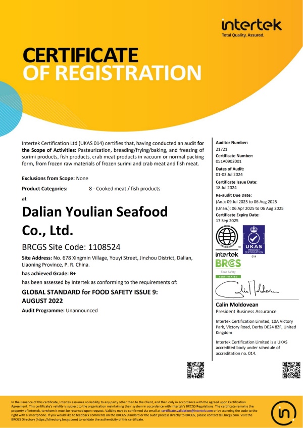 Contact: Dalian Youlian Seafood Co.,Ltd.